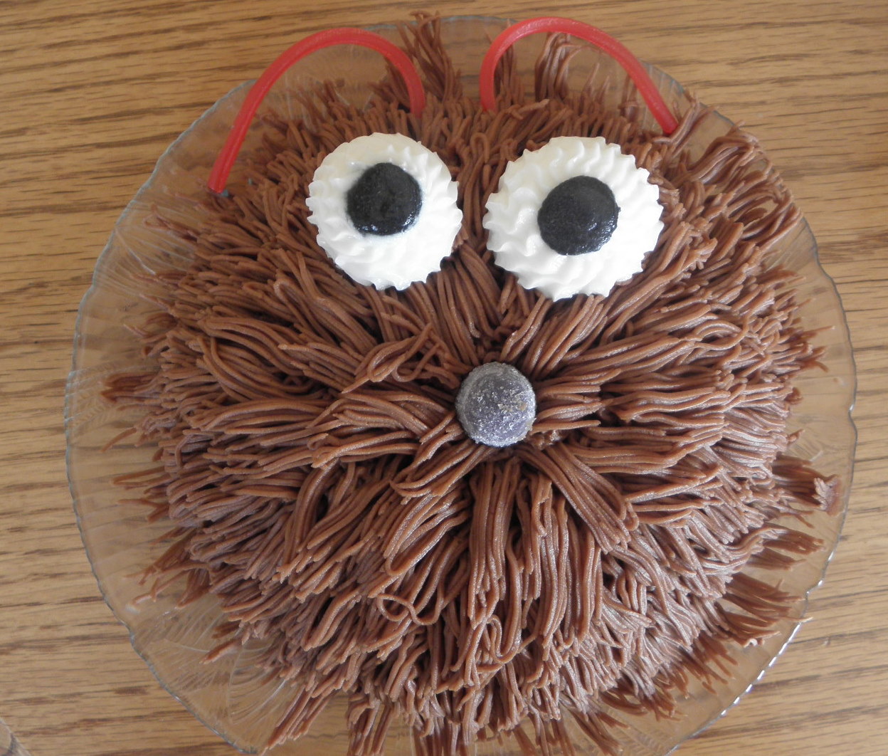 This is Bradon's cake. His giant monster cupcake. silly boy, wanting monsters for his 17th birthday. wow, I love this kid.